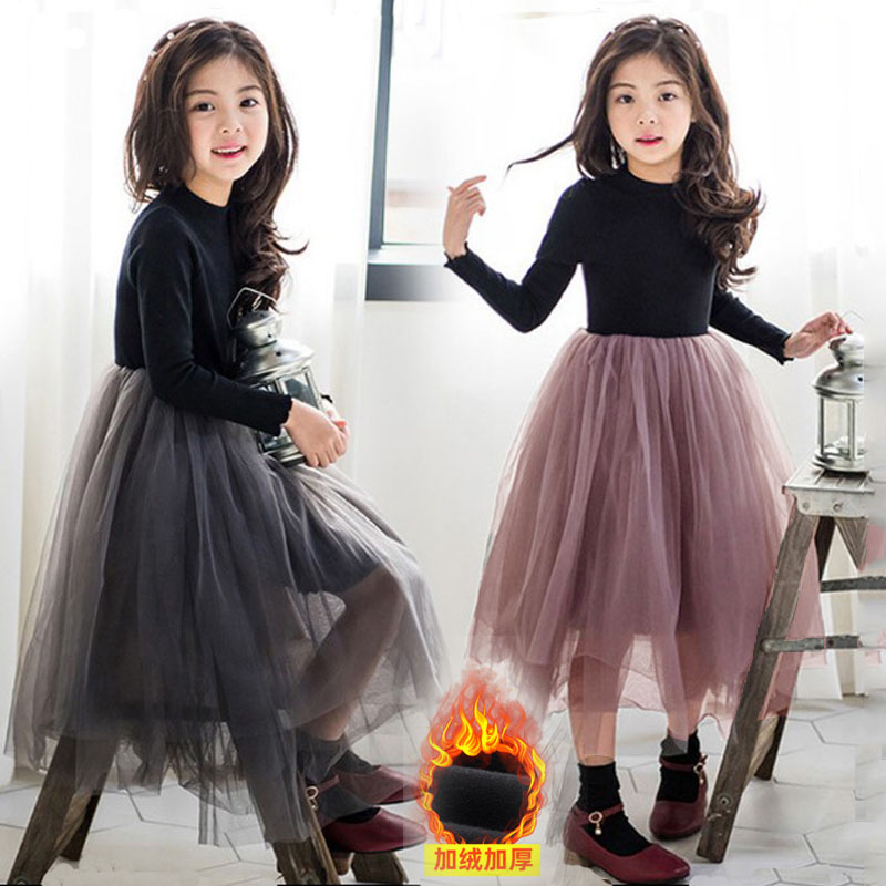 冬季女童加绒连衣裙网纱公主裙儿童加厚蓬蓬纱长裙中大童宝宝裙子