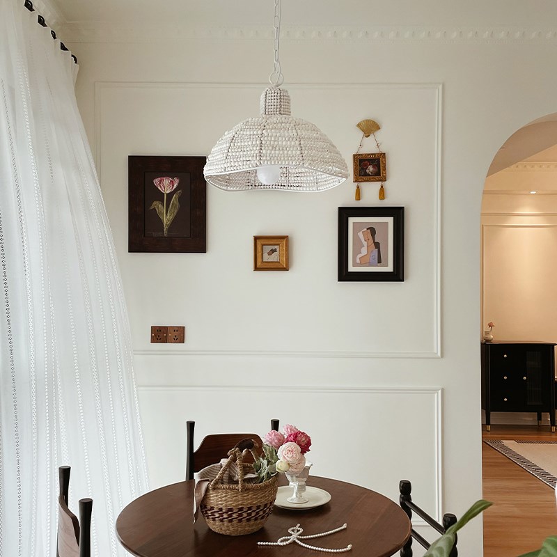 凯乔 手工木珠餐厅岛台灯法式复古简约卧室灯具美式创意中古吊灯