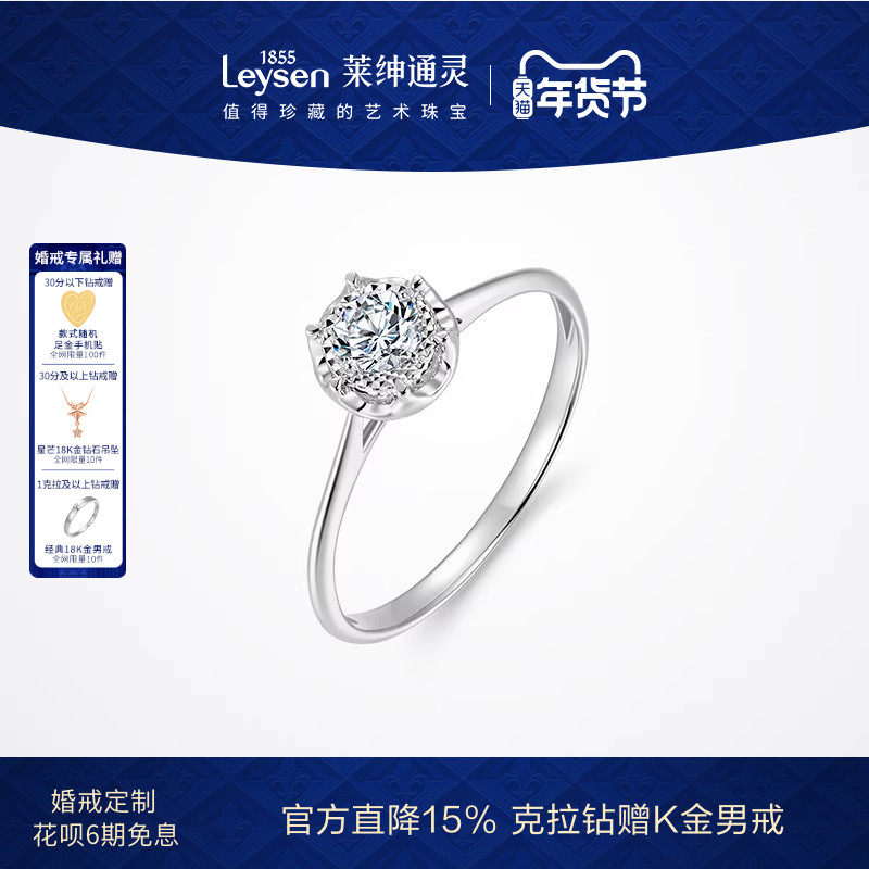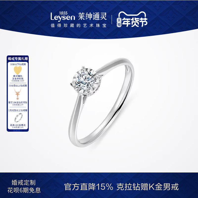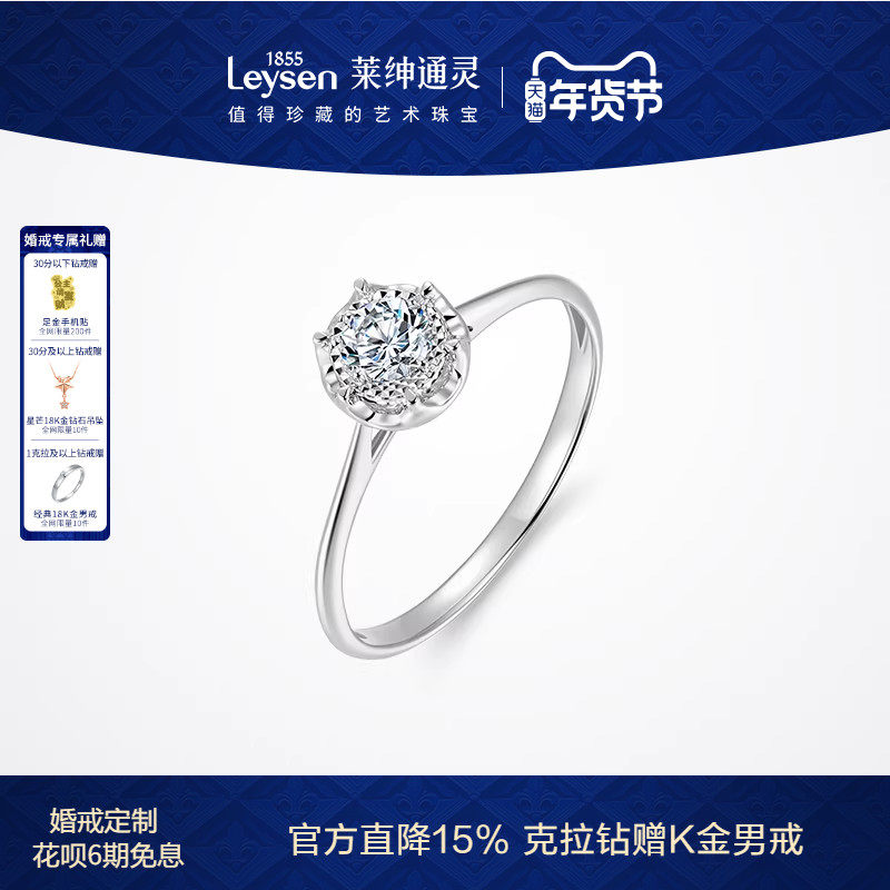 中国黄金央创莫桑石钻戒女求婚戒指订婚结婚对戒钻石锆石婚戒S925
