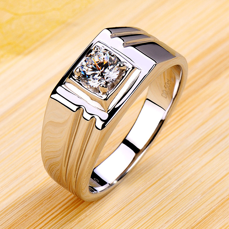莫桑石钻戒男钻石戒指婚戒S925纯银镀白金铂金结婚订婚送男友礼物