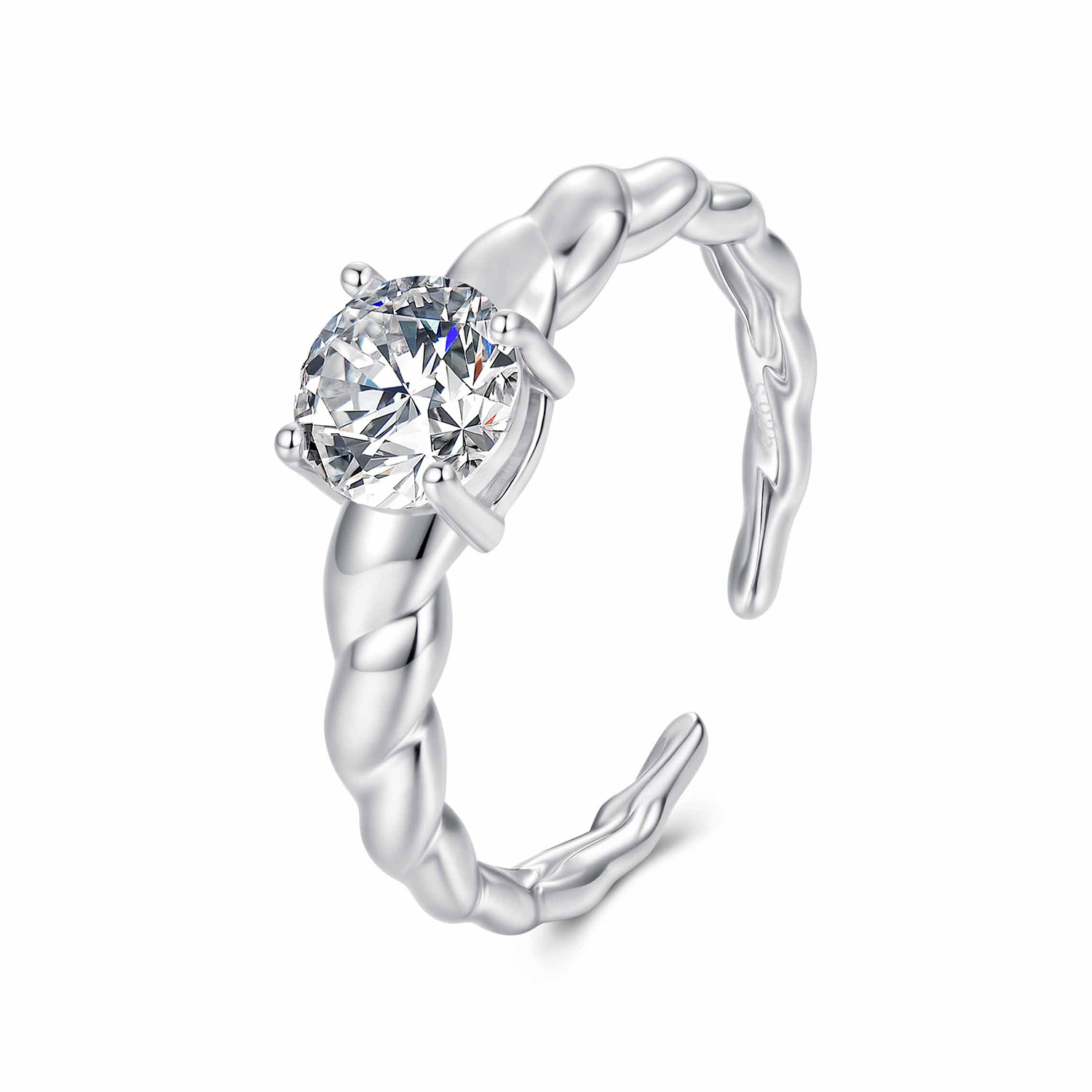 原创D色一克拉莫桑石麻花开口戒指婚戒s925银四爪闪耀戒指优雅