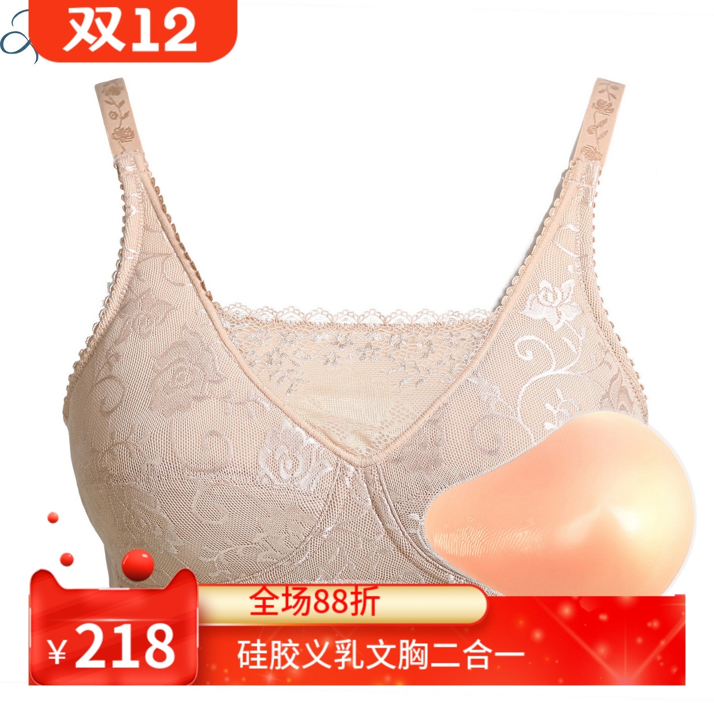 无钢圈义乳专用文胸二合一夏季透气乳腺胸罩癌术后内衣硅胶假乳房