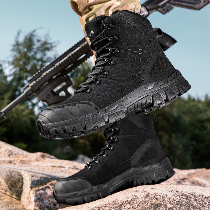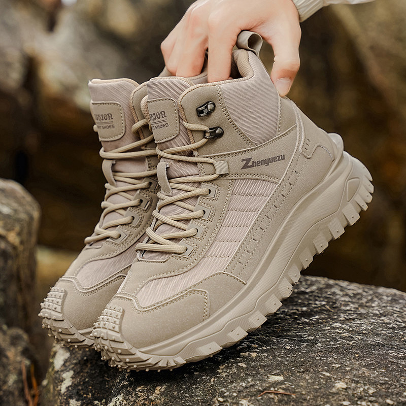 大码登山鞋男春季户外徒步防滑防水沙漠工装作战靴男士高帮训练鞋