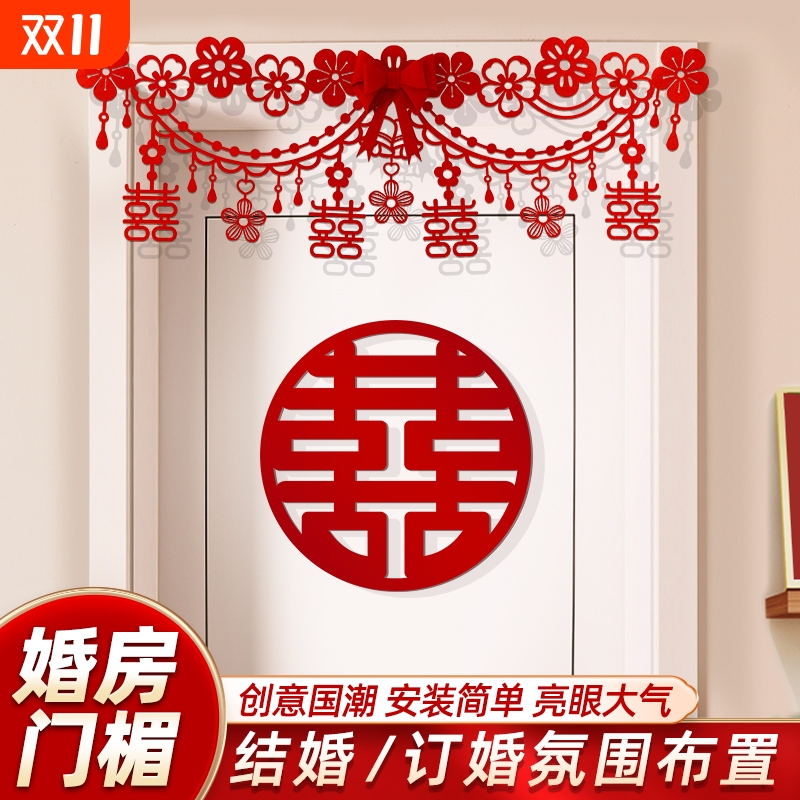 婚房房门拉花布置结婚卧室装饰囍字套装婚礼喜字门贴婚庆用品大全