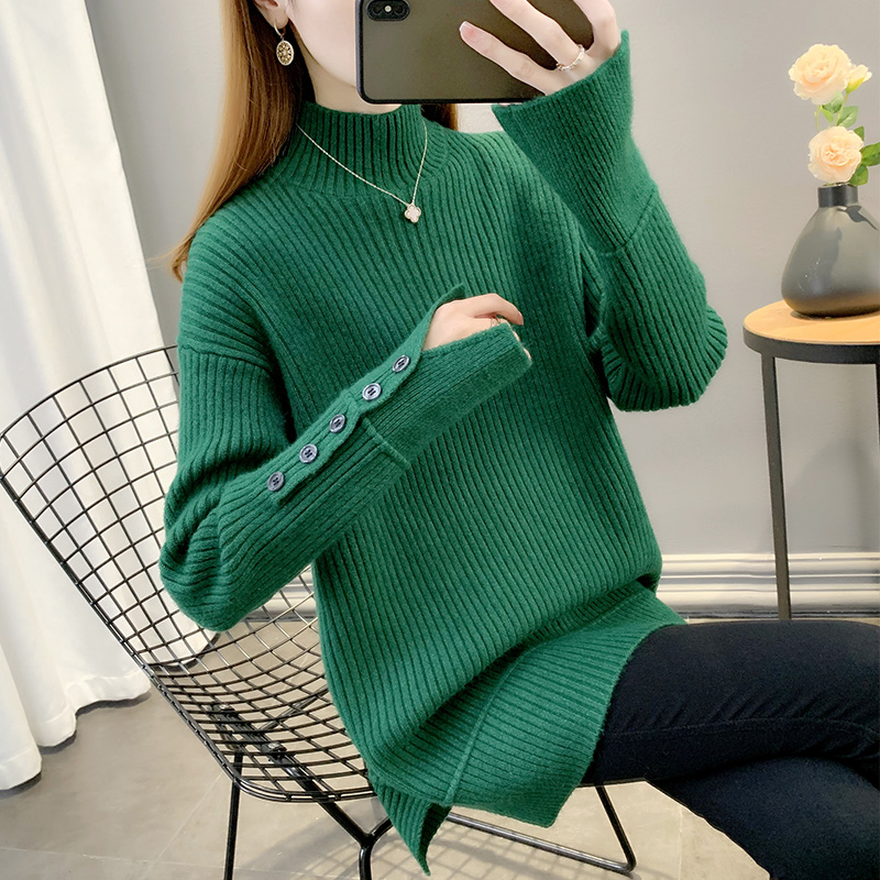 毛衣女套头中长款半高领2023秋冬加绒加厚宽松百搭女士针织打底衫