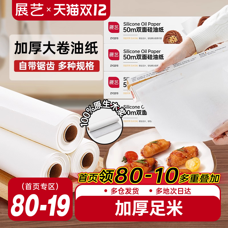 展艺硅油纸双面不粘免刀撕食品烘焙烤箱烧烤肉空气炸锅吸油纸家庭