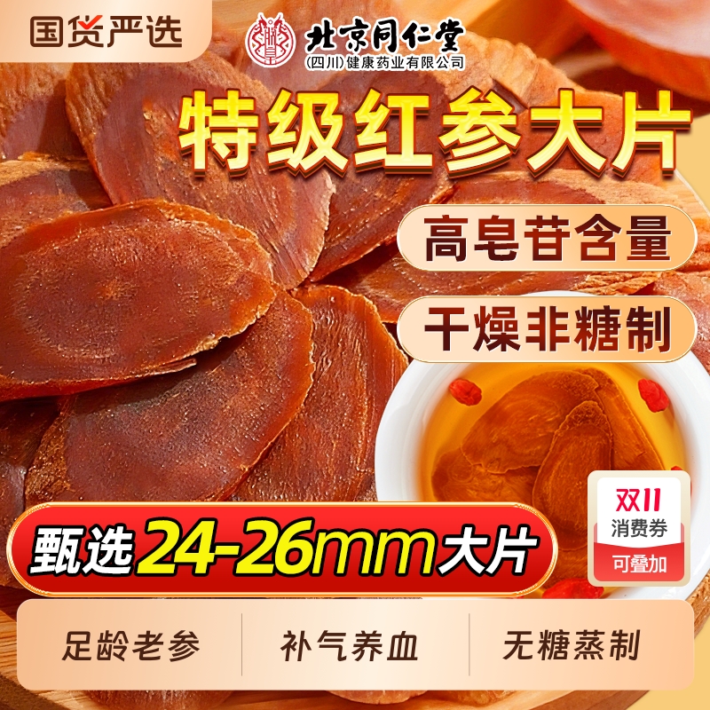 北京同仁堂红参片长白山足龄老参红参片高丽参人参片红参主根泡水