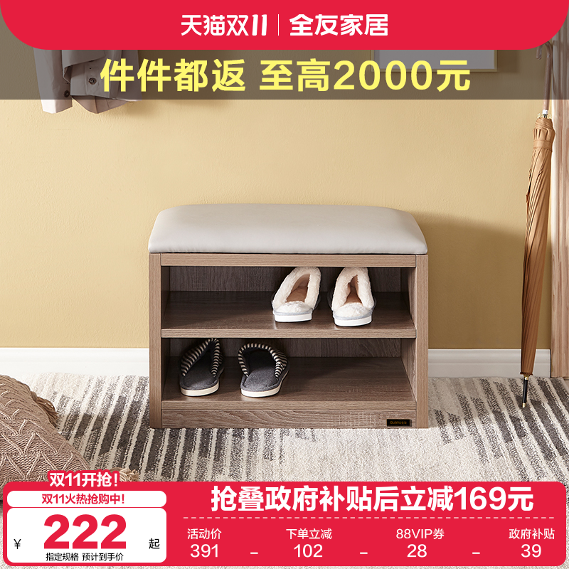 全友家居家用入户门口收纳储物鞋柜穿鞋换鞋凳子一体软包坐垫KD