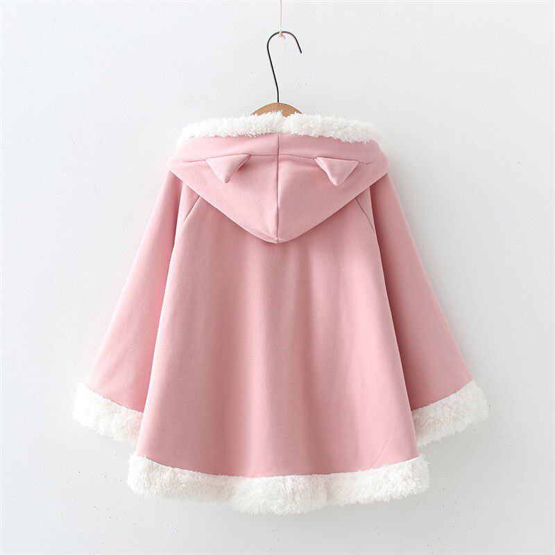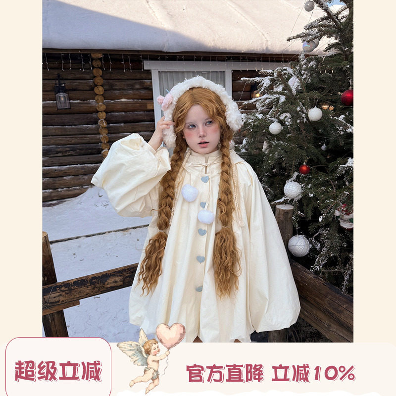 Labeau-抱抱熊-天使扣连帽斗篷外套女冬季加绒加厚宽松花苞裙棉服