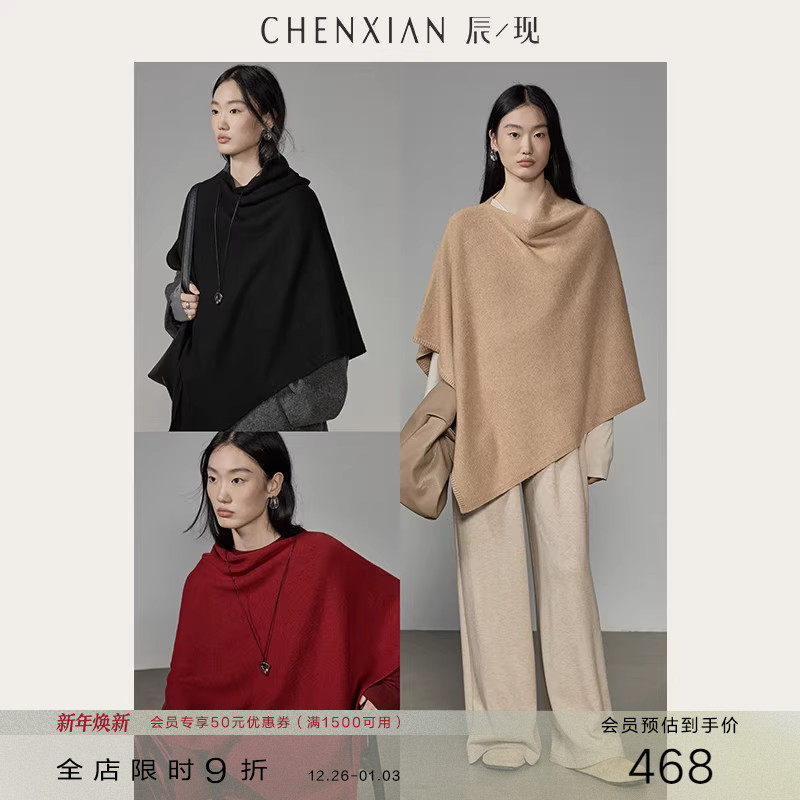 CHENXIAN辰现不规则叠穿荡领针织衫羊毛加厚外搭披肩斗篷外套女冬