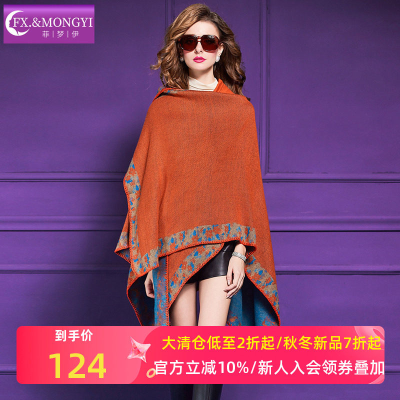 菲梦伊连帽斗篷外套女冬季高品质加厚印花宽松披肩设计感时髦上衣