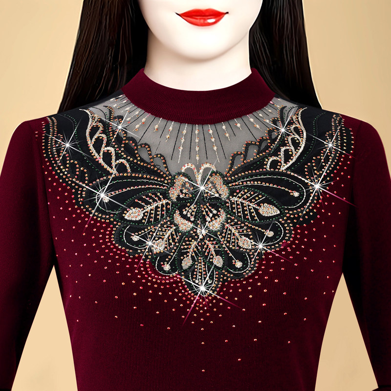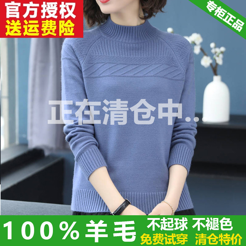 鄂尔多斯市新款羊毛衫女士秋冬半高领中老年羊毛打底针妈妈毛衣女