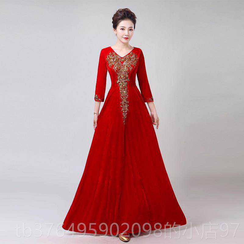 新款合唱出服长大裙女人中老年合唱服装主成持人舞台装合唱演团演