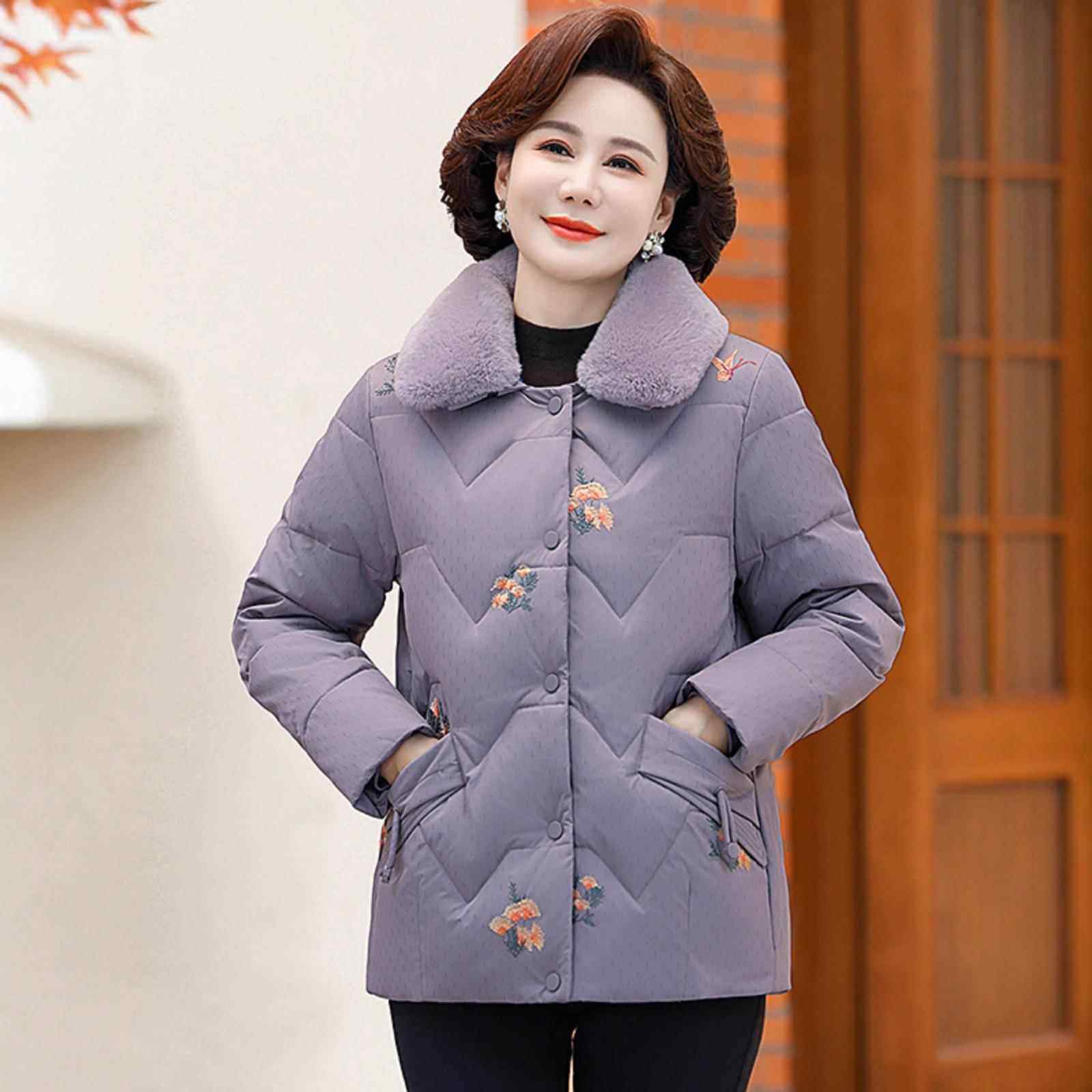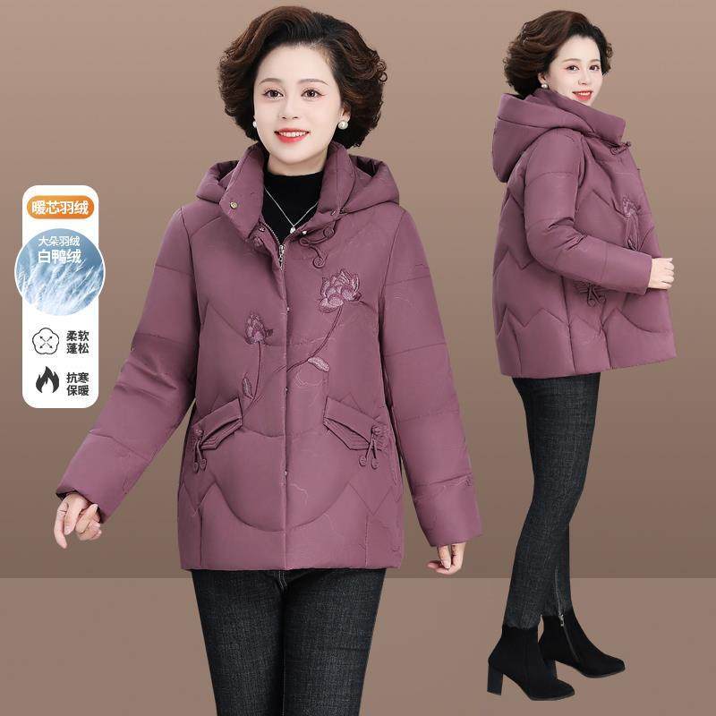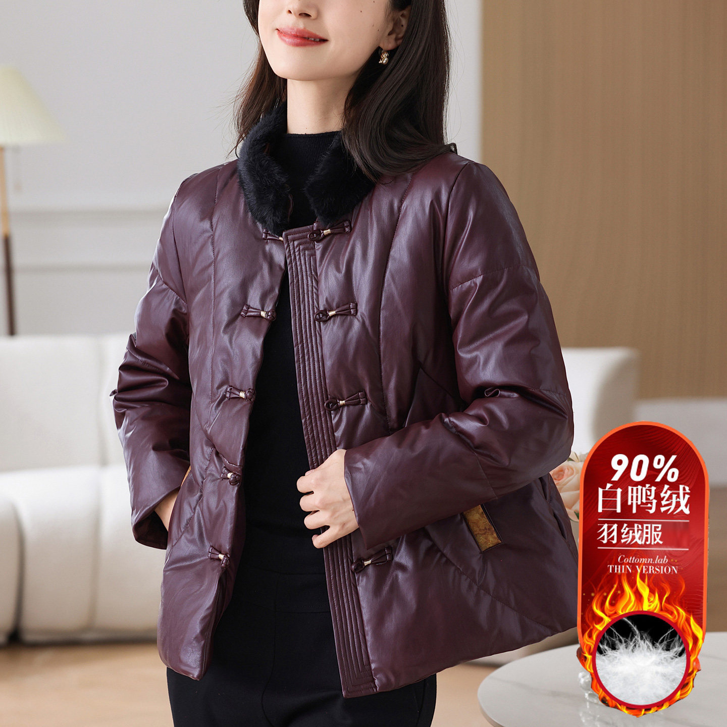 中老年女人羽绒服洋气新中式国风盘扣妈妈冬装鸭绒袄立领保暖外套