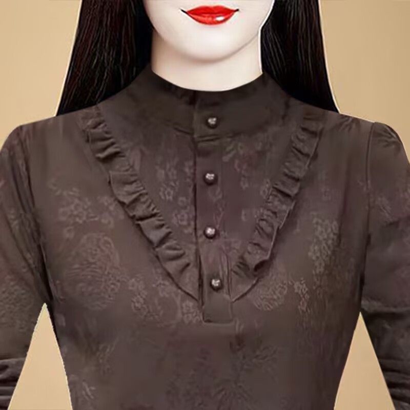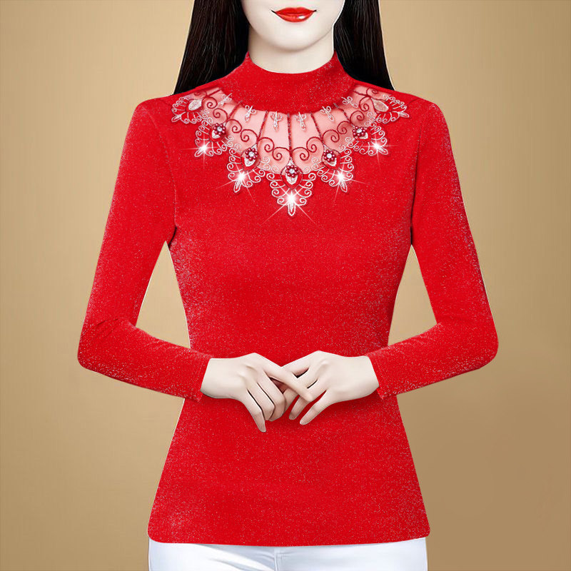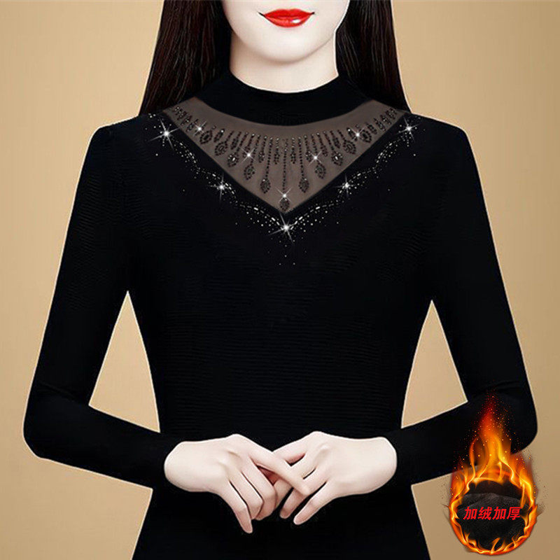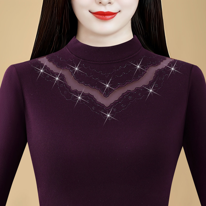 保暖内衣女加厚加绒上衣冬季新款蕾丝中老年妈妈高级保暖衣打底衫