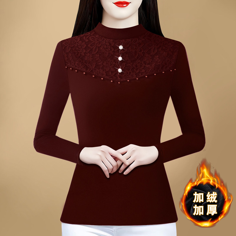 保暖内衣女士加厚加绒上衣秋冬季新款中老年蕾丝内搭保暖衣打底衫