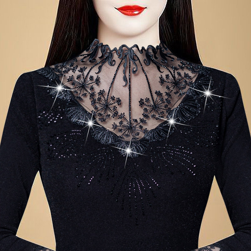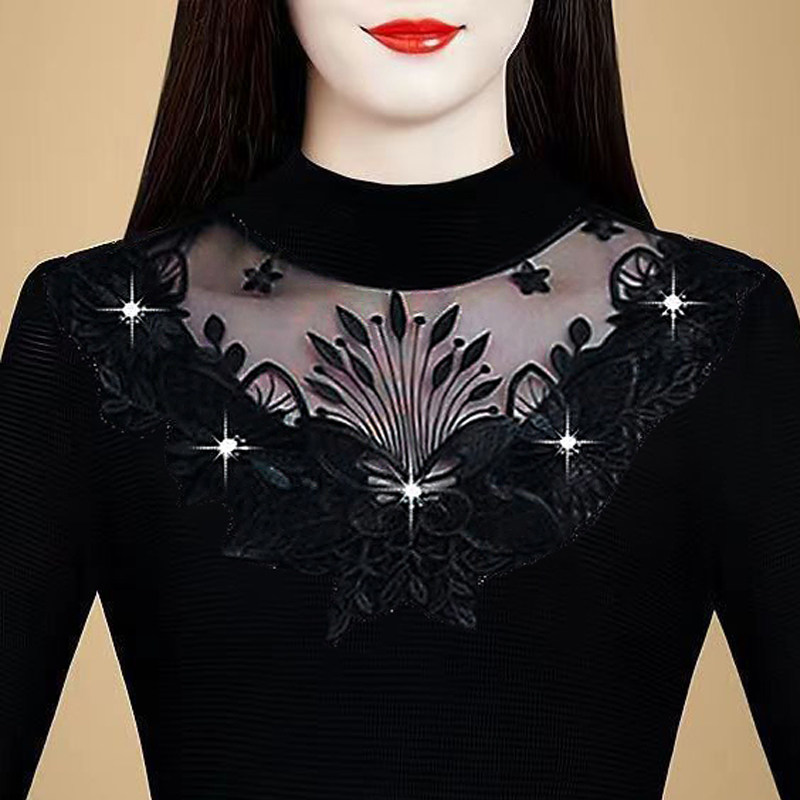 秋冬新款保暖内衣女加绒加厚上衣中老年蕾丝内搭保暖超舒服打底衫