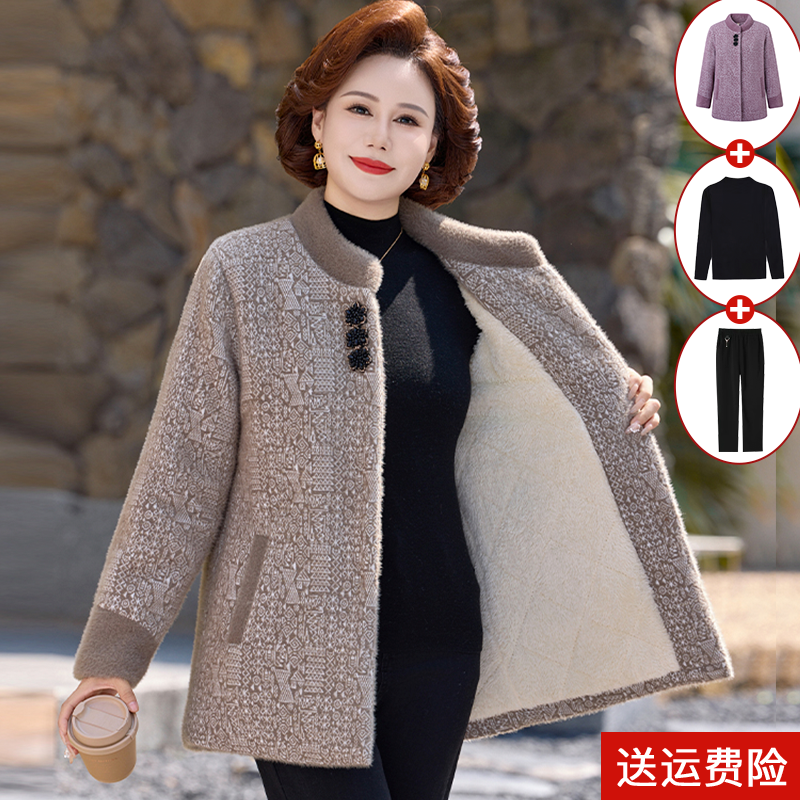 妈妈冬装加绒加厚水貂绒外套保暖中老年女人2025新款加棉毛呢大衣