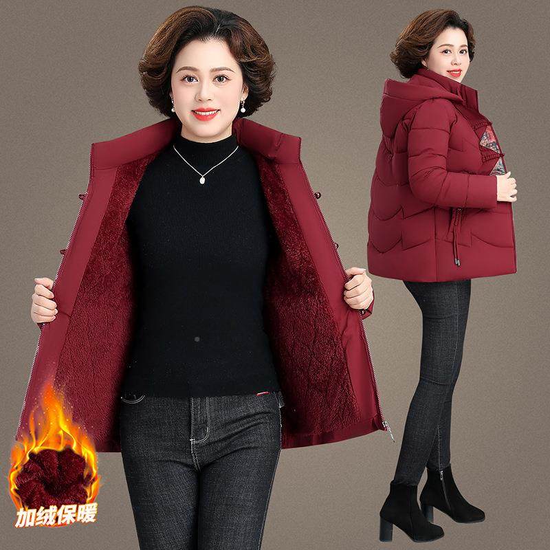 妈妈棉服女人秋新款冬季帽奶奶24-88197棉衣加厚中老年冬装外套棉