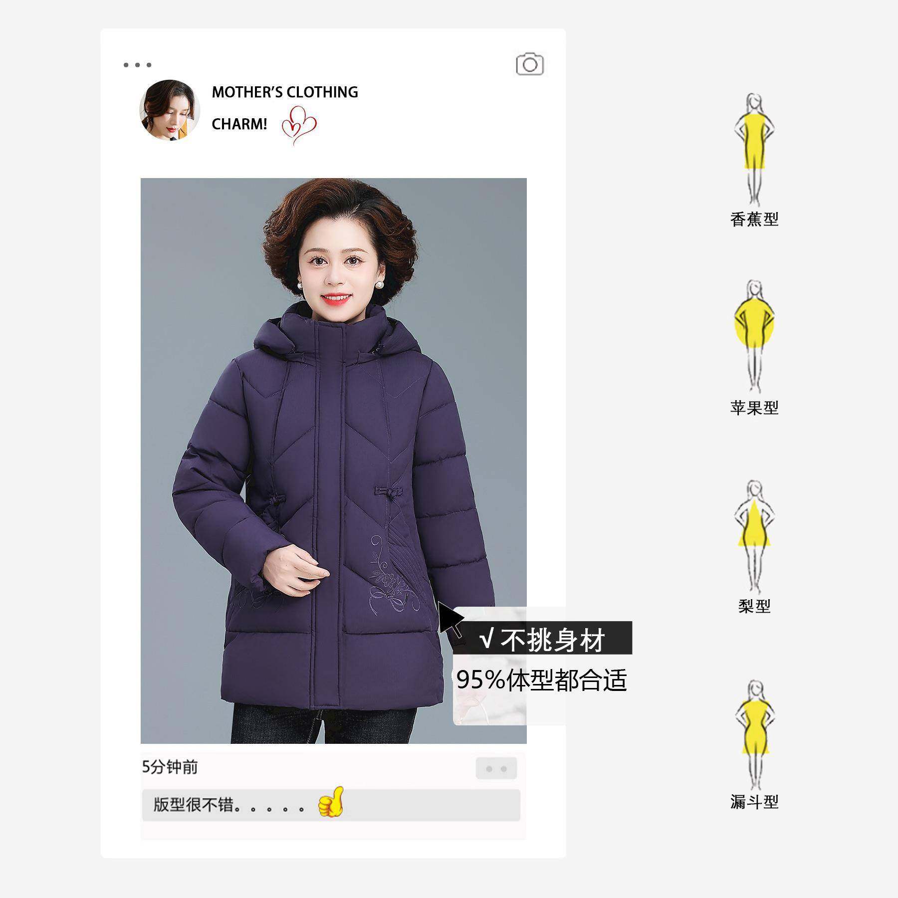 妈妈冬装羽绒棉服中长款修身显瘦中老年女人棉衣新中式国风连帽款