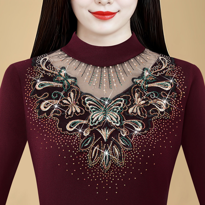 中老年妈妈保暖内衣女加厚加绒上衣冬季新德绒发热内搭绣花打底衫