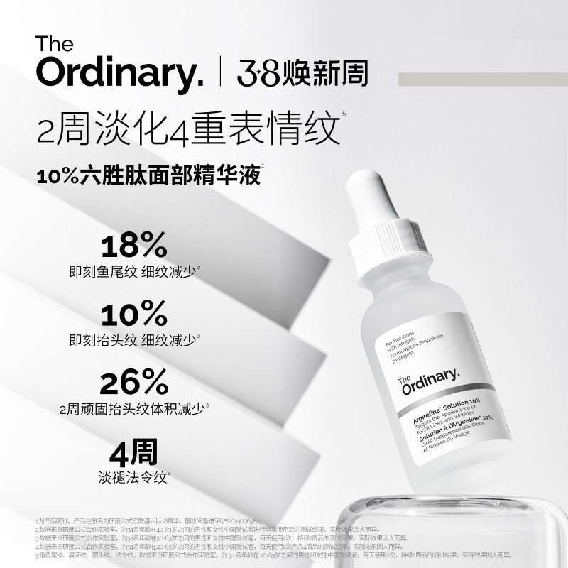 The Ordinary研度公式10%六胜肽精华紧致淡纹鱼尾纹抬头纹法令纹