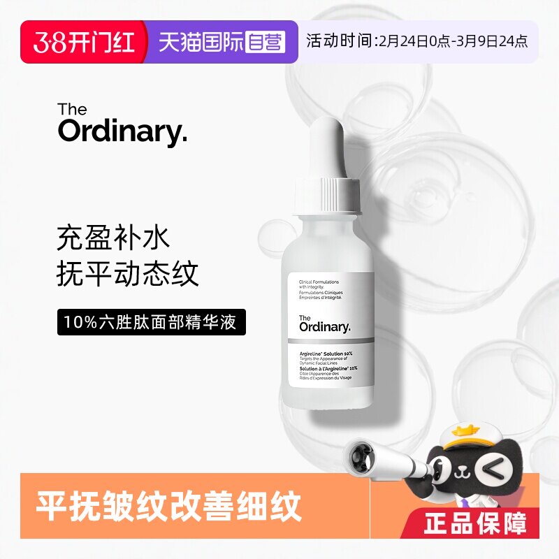 the ordinary10%六胜肽精华液淡化细纹提拉抗皱紧致表情纹30ml
