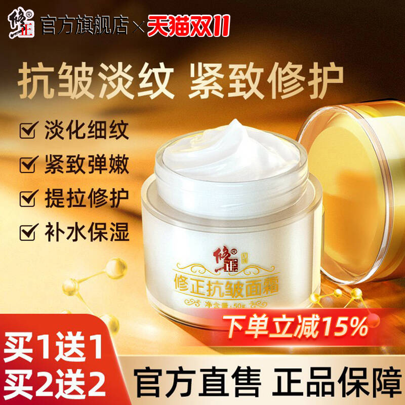 买1送1】修正抗皱面霜六胜肽淡纹官方官网正品旗舰店紧致晚霜乳液