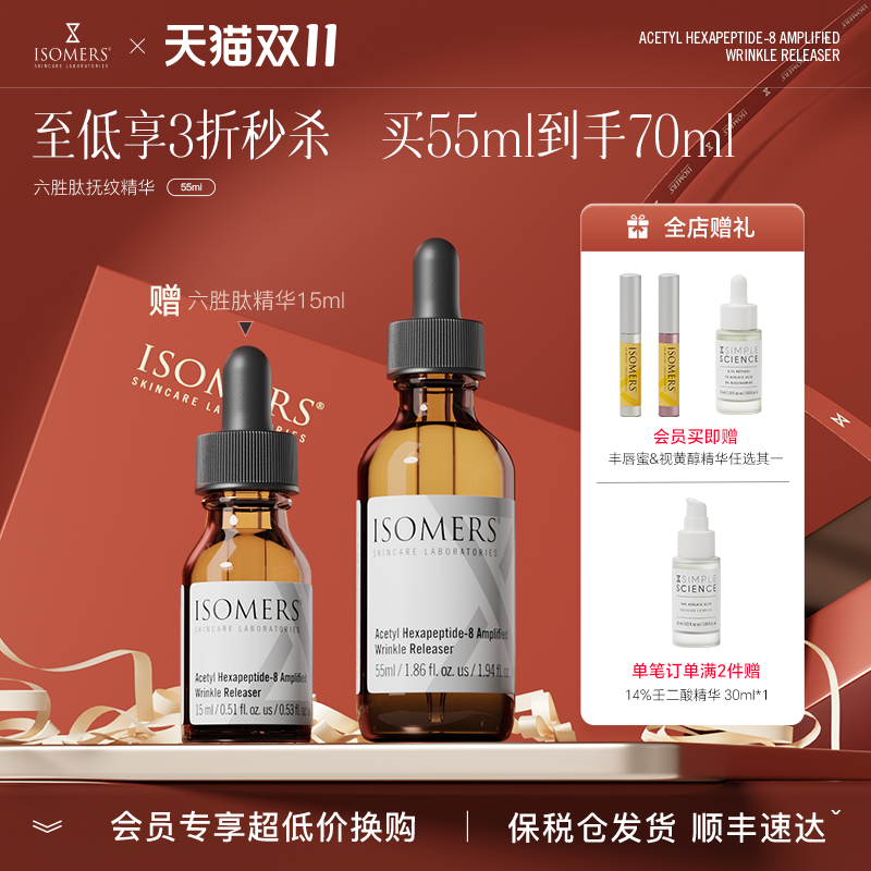 ISOMERS六胜肽紧致抗皱精华抬头纹抗衰淡纹御老面部精华部分临期