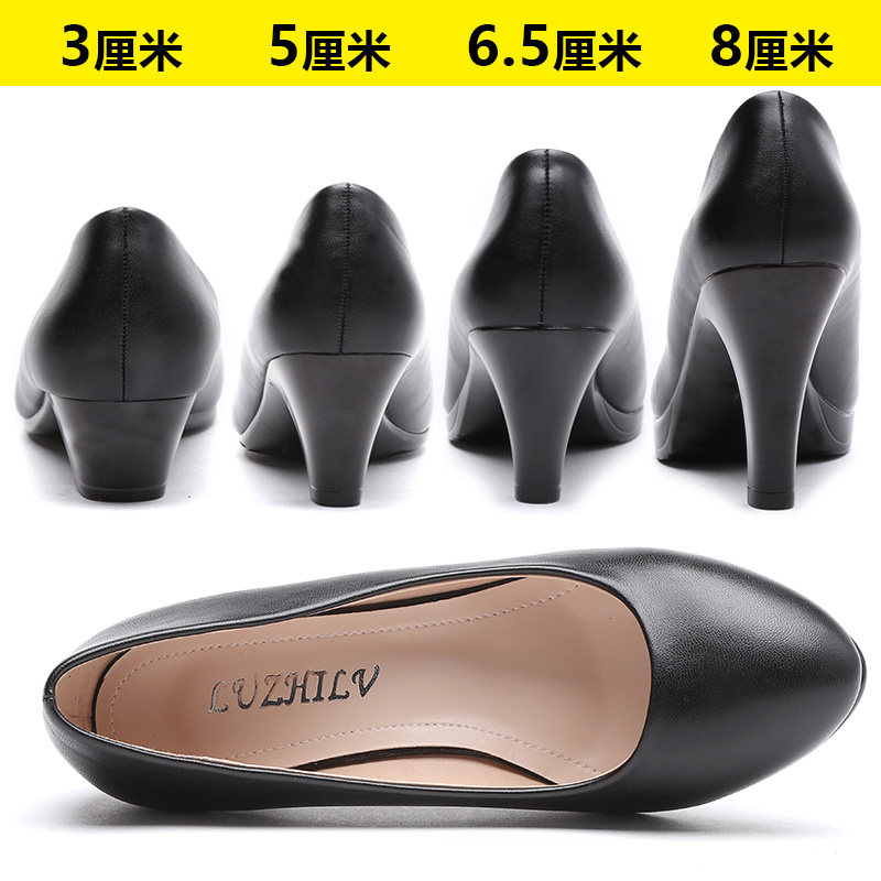 职业女鞋高跟鞋黑色皮鞋正装面试上班女单鞋圆头粗跟中跟工作鞋女