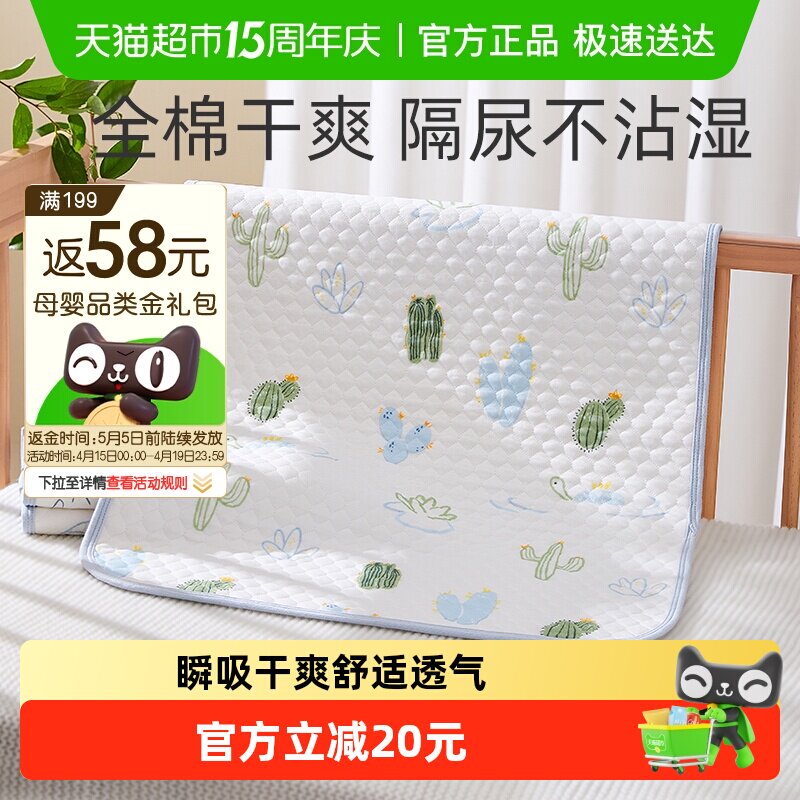 全棉时代婴儿隔尿垫可水洗宝宝儿童大尺寸透气防水纯棉姨妈垫床垫