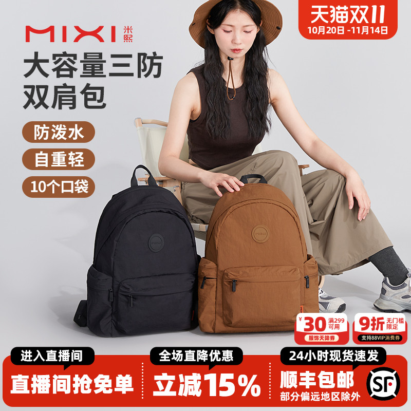米熙户外轻便大容量双肩包女2025新款旅行防水电脑背包男旅游书包