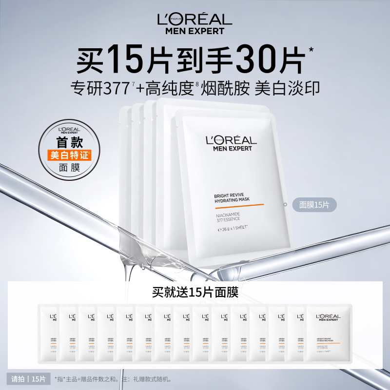 欧莱雅男士耀白面膜美白淡斑祛斑补水保湿淡化痘印烟酰胺男生专用