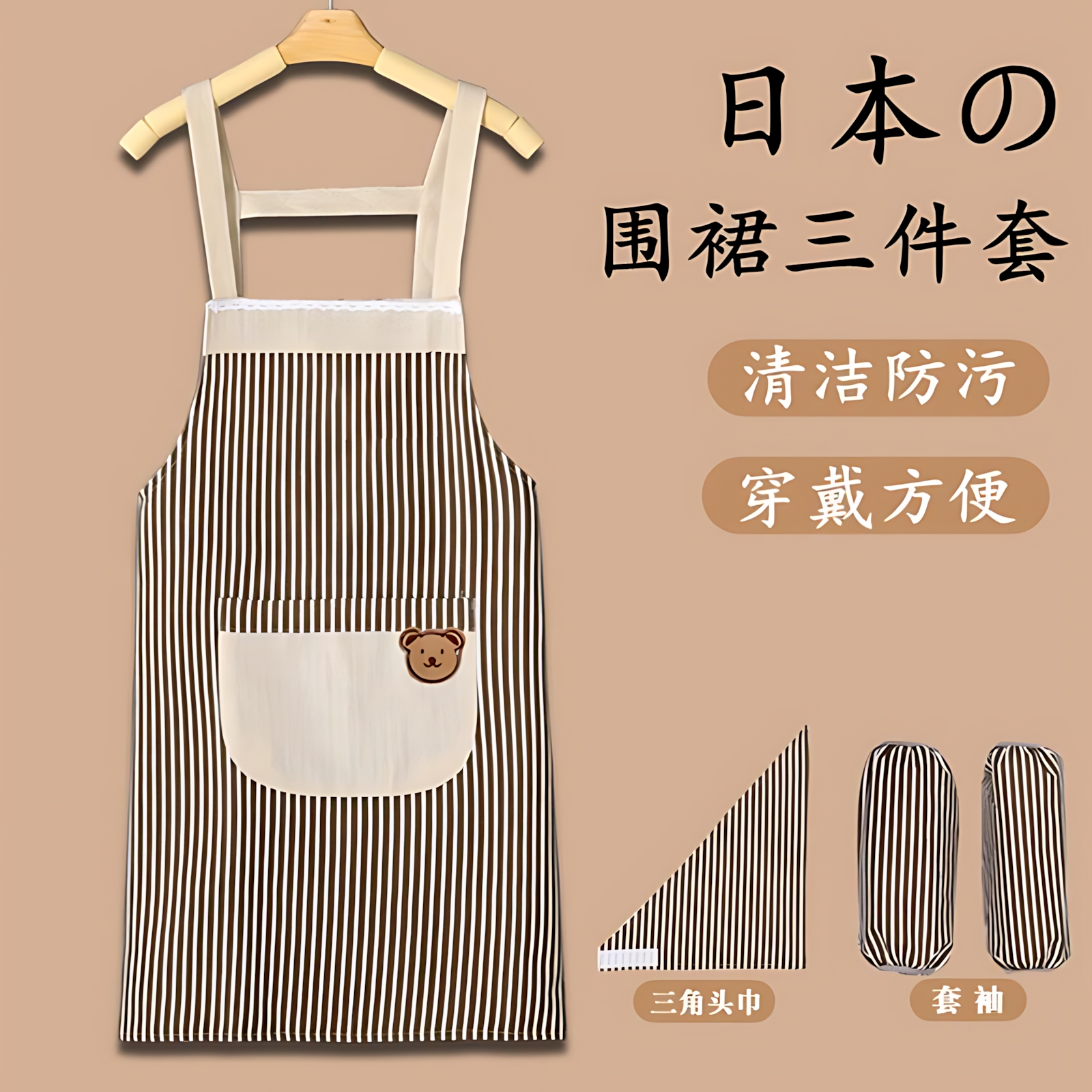 2025新款围裙袖套帽子三件套家用厨房做饭罩衣棉麻洋气女围腰套装