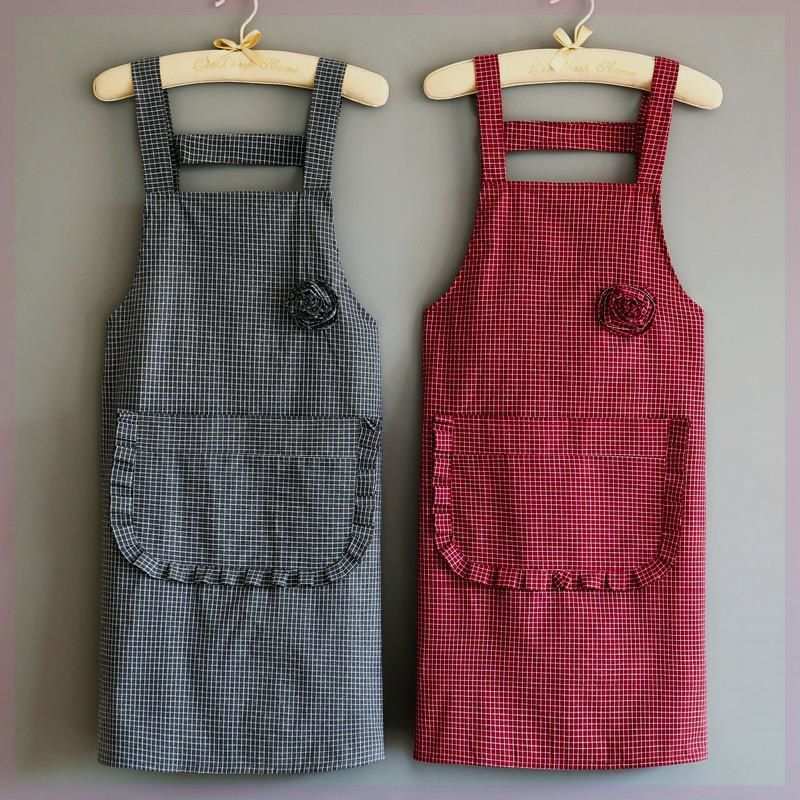 漂亮背心式围裙袖套夏季纯棉布透气家用上班工作厨房防污大人围腰