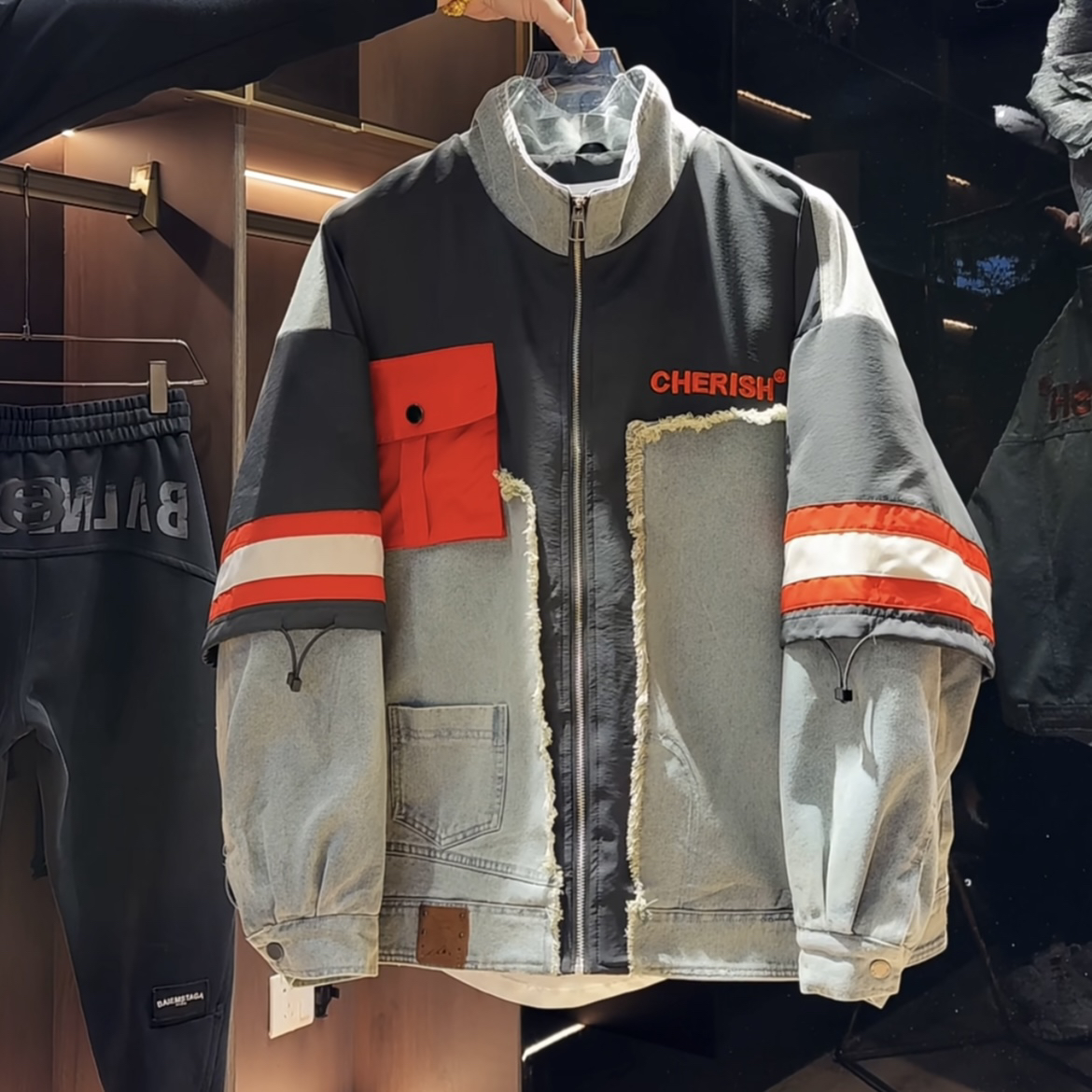 男女同款宽松潮牌牛仔拼接外套男士春季新款炸街痞帅夹克情侣上衣