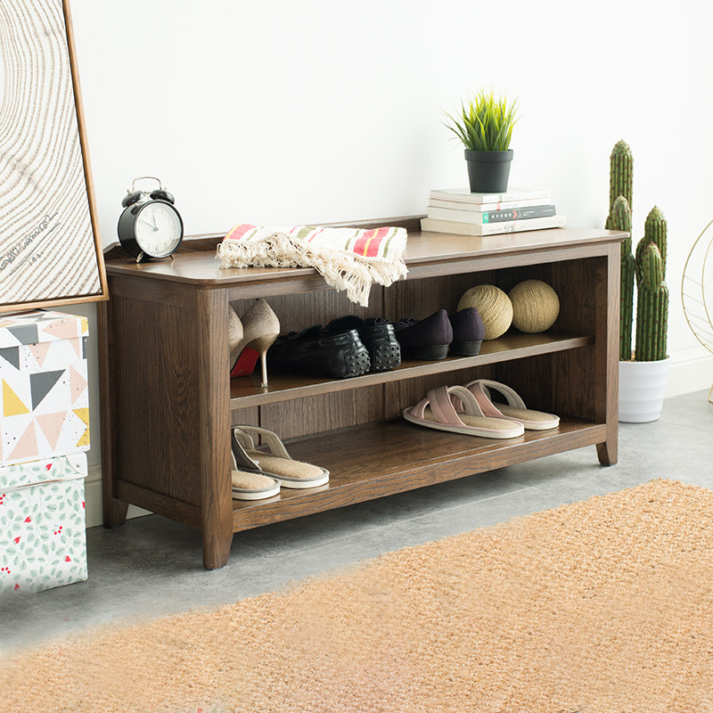 治木工坊美式全实木换鞋凳简约橡木鞋架家用1米置物架胡桃色鞋柜