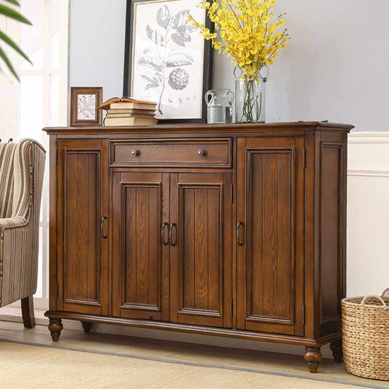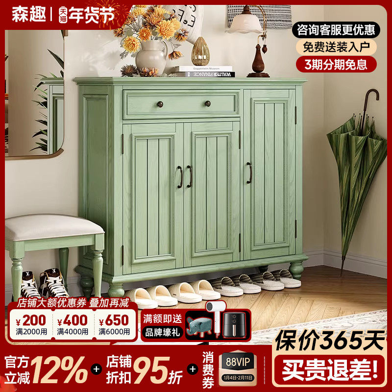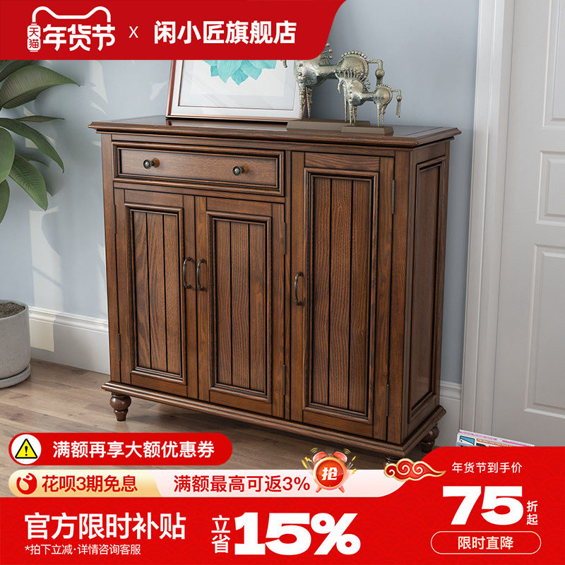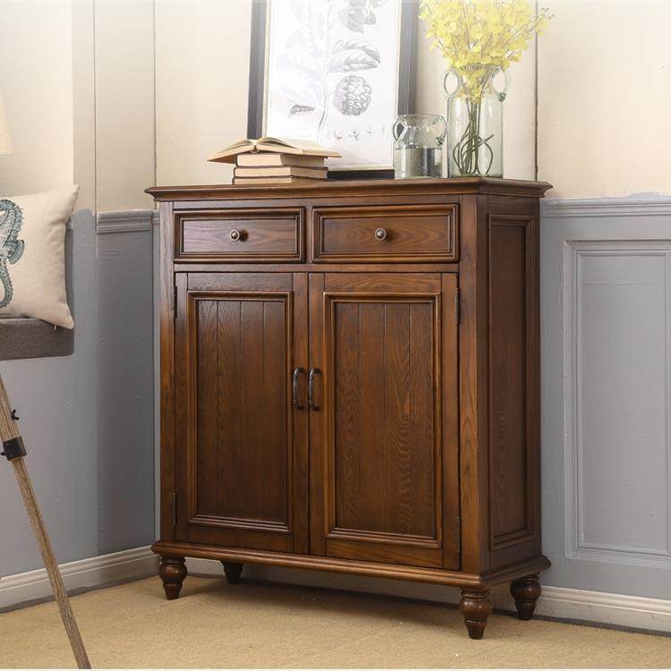 简约美式鞋柜家用门口大容量多功能储物鞋柜复古全实木门厅隔断柜