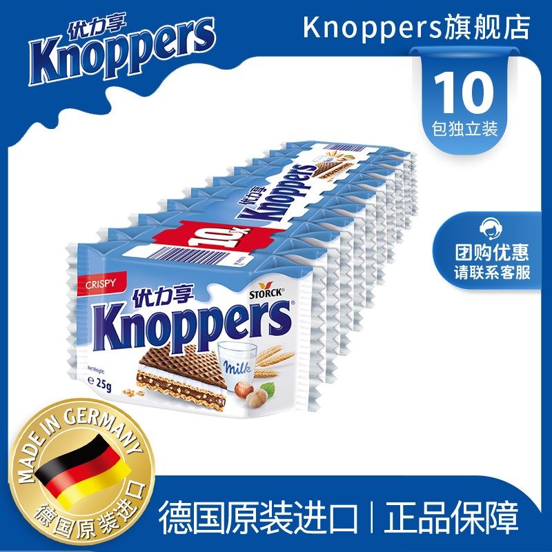 Knoppers优力享威化饼干德国进口巧克力夹心饼干休闲零食250g10包