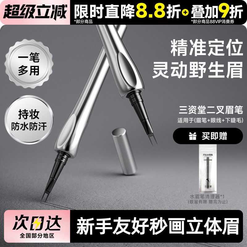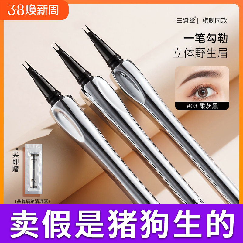 【2支减20】三资堂二叉水眉笔持久防水不脱色野生眉品牌正品官方