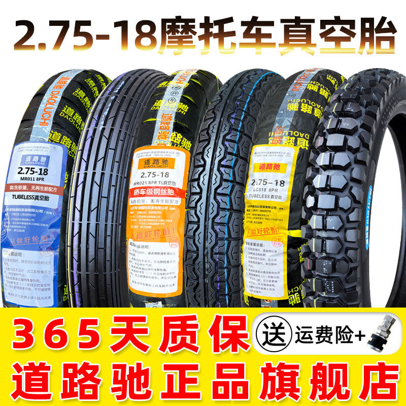 道路驰2.75-18摩托车轮胎275一18寸外胎内胎防滑直纹前胎越野胎