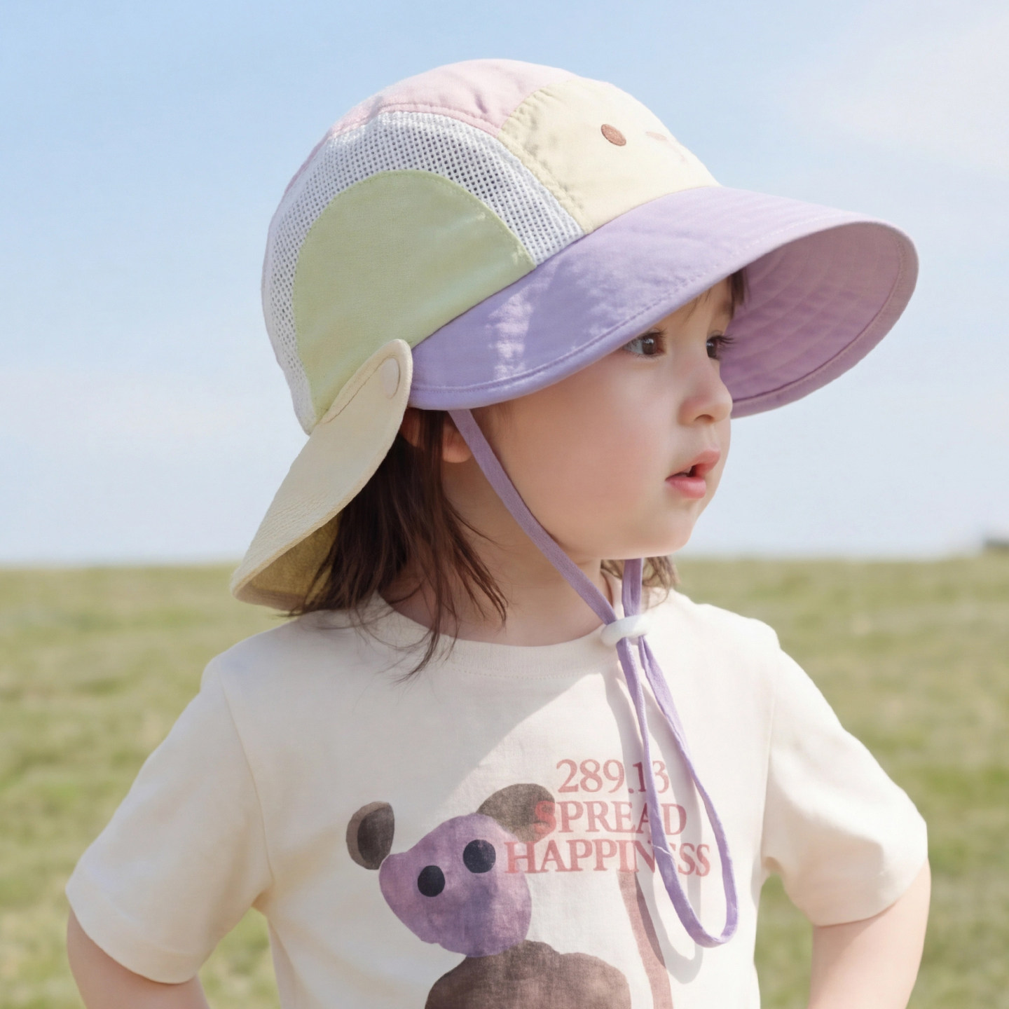 伊米伦宝宝防晒帽夏季防紫外线轻薄透气儿童遮阳帽带披肩婴儿帽子