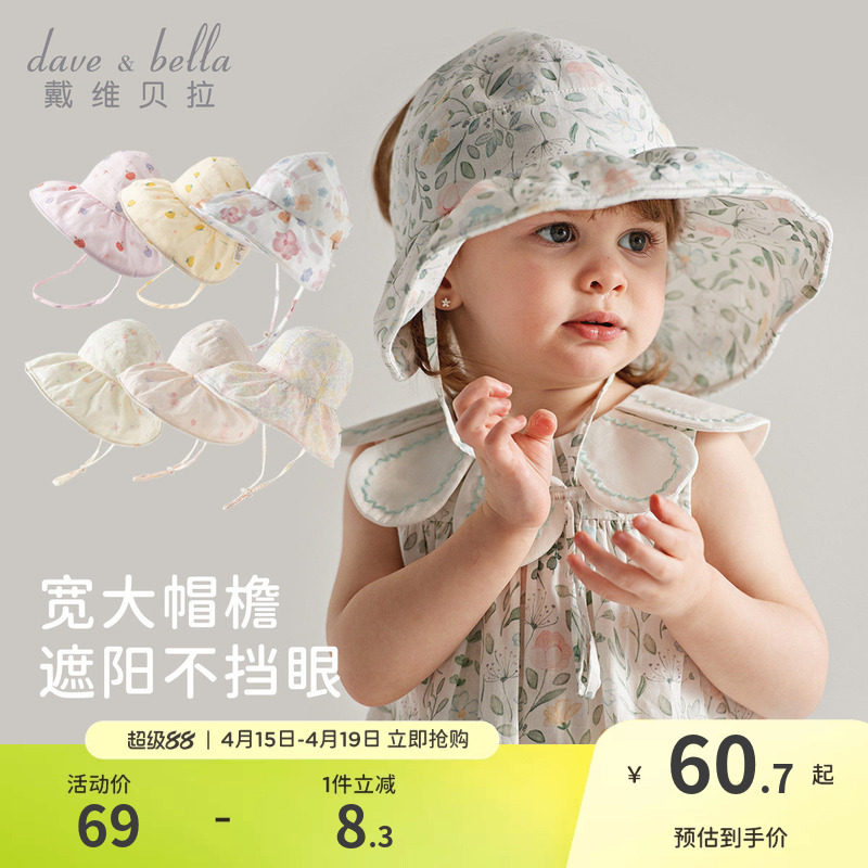 戴维贝拉儿童遮阳帽女童帽子户外透气夏季新款宝宝大檐空顶帽薄款