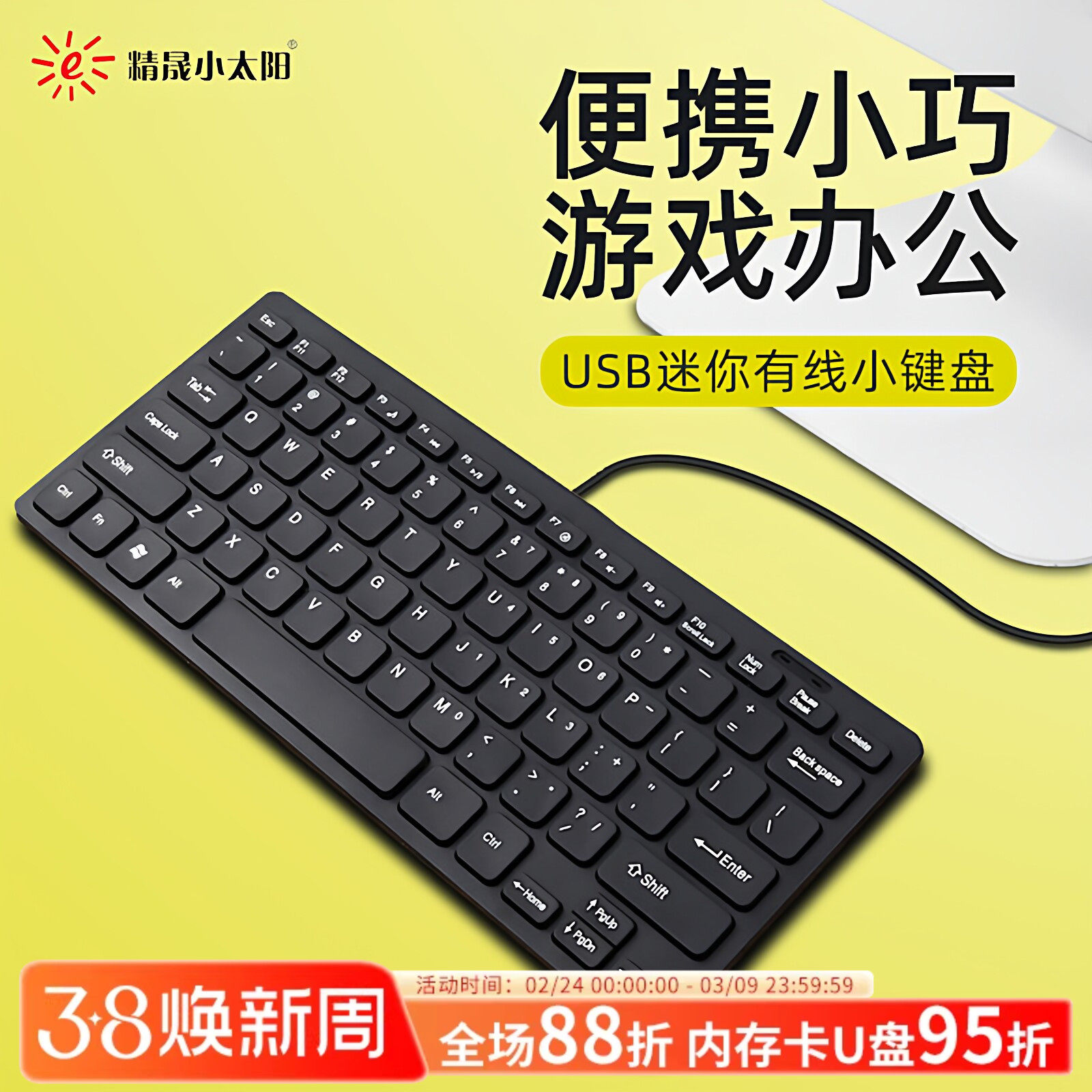 精晟小太阳K-1000笔记本电脑外接小键盘小型轻薄便携USB有线键盘