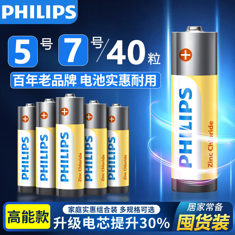 飞利浦5号7号电池40粒碳性干电池五号七号空调电视机遥控器低功耗儿童小玩具挂钟表鼠标键盘电池aaa1.5v批发