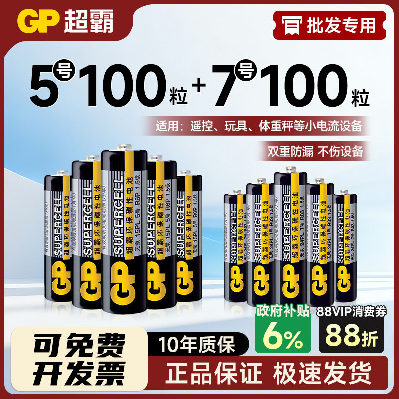 GP超霸5号7号200粒电池批发高性能碳性电池1.5V无汞环保五号七号干电池空调电视遥控器鼠标键盘闹钟挂233