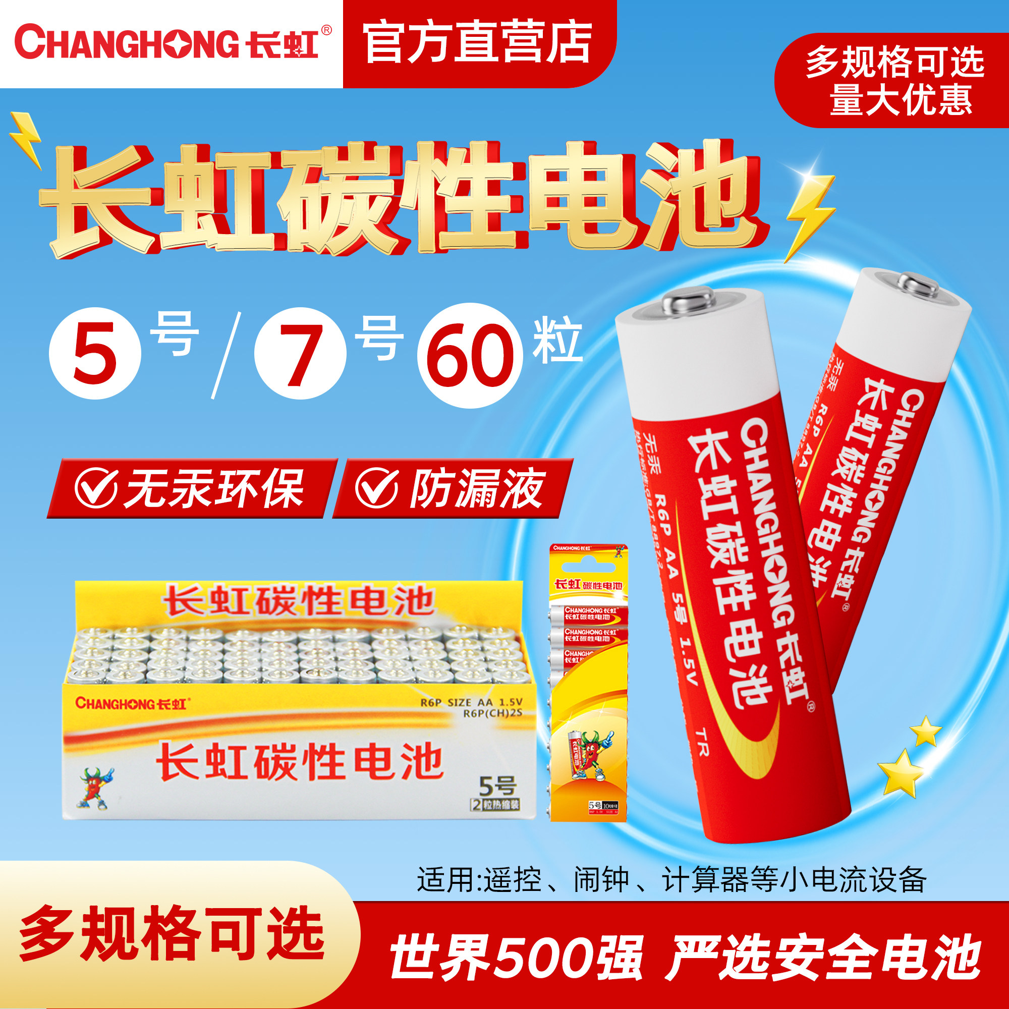 长虹5号7号碳性干电池五号七号官方正品空调电视遥控器儿童玩具闹挂钟手表无线鼠标键盘电池小号AAA批发1.5V