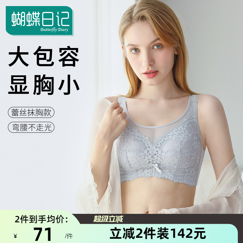 内衣女大胸显小文胸蕾丝薄款无钢圈聚拢收副乳防下垂胸罩夏季超薄