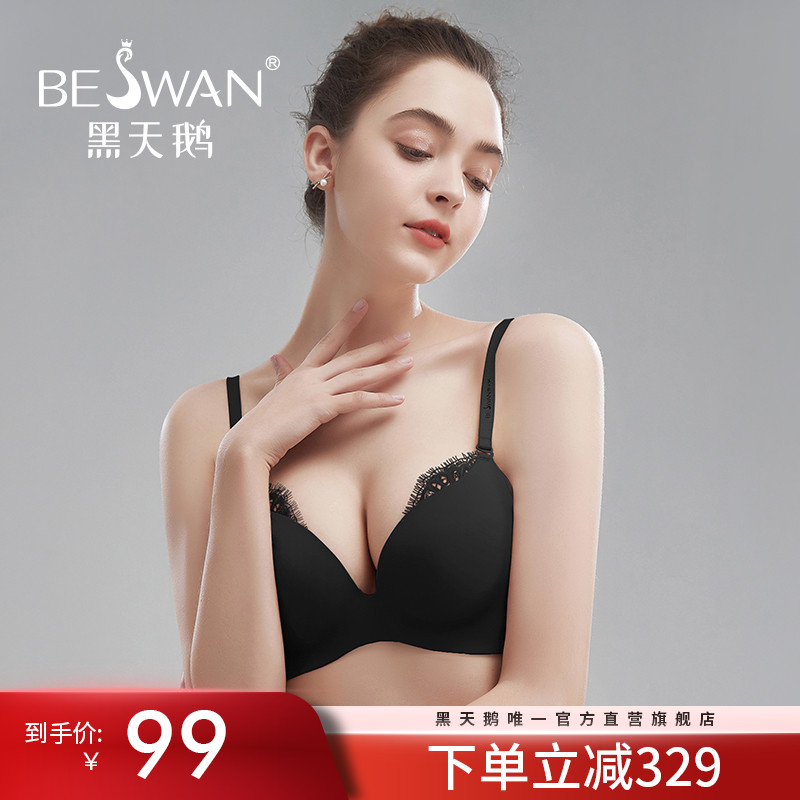 黑天鹅简约美胸内衣女透气薄款聚拢小胸收副乳文胸无钢圈纯色胸罩