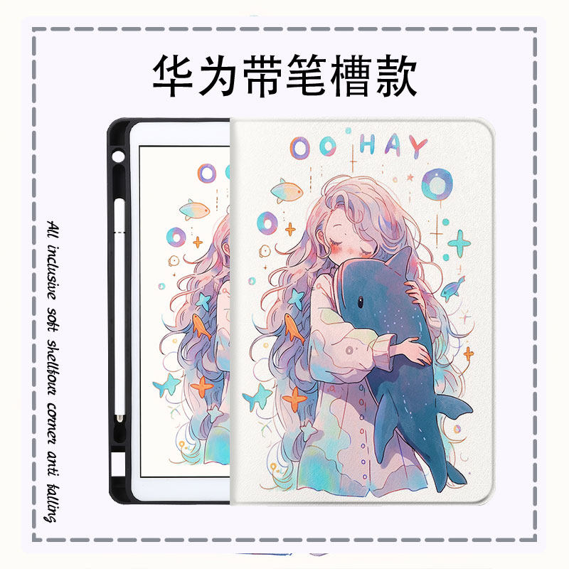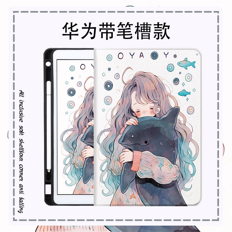 海豚女孩2适用华为平板matepadpro保护畅享8.4寸m5青春版7保护套10.4可爱m6皮套m3卡通v6硅胶书本10.8荣耀C5